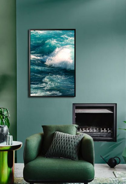 A trendy poster of the ocean in cool and refreshing colors. This art will not only make your wall beautiful. It will likewise add a calming and comfortable room atmosphere. Create stunning wall art with this poster along with other prints in different sizes and your home will have a focal point that will be loved by your guests.