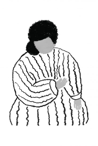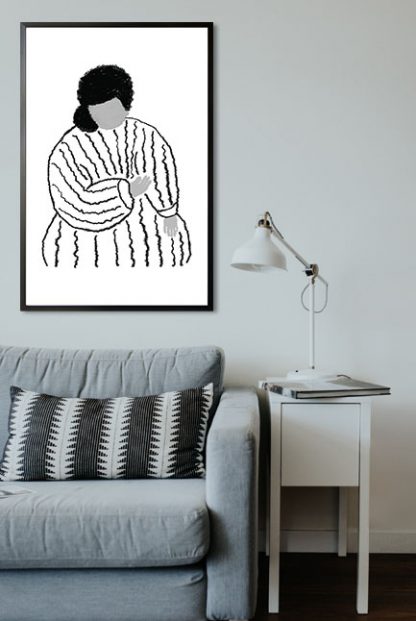 Simple yet sophisticated illustration of a woman in neutral shades. This poster art can help create a stylish and trendy room. With the contrasting shades, the room will have a minimalist appearance that will captivate the hearts of its viewers. In addition to these, the poster art can create a focal point that will make your room look fantastic.
